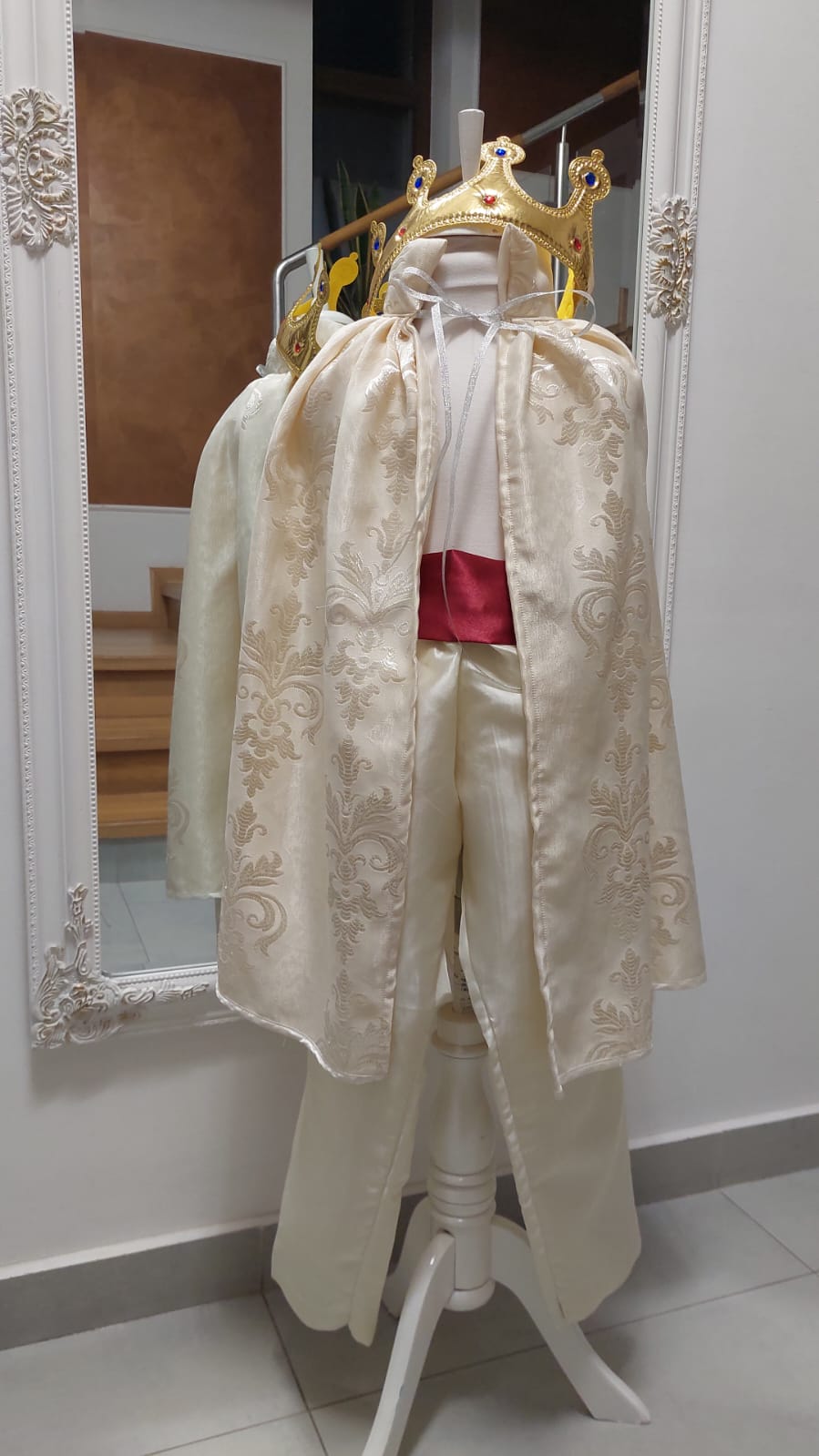 Costum de crai sau mag visiniu, materialul este din satin si brocard, ideal pentru a fi purtat la serbare, la petreceri, la carnaval, la ședințe foto.