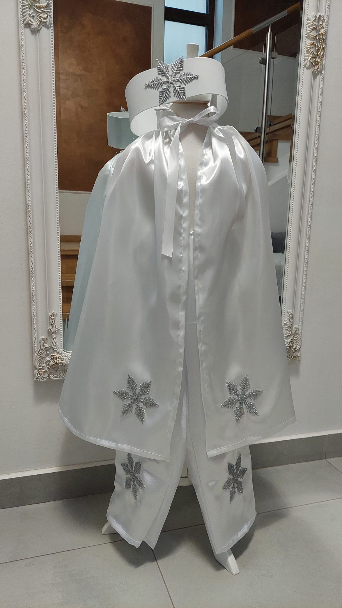 Costum fulg de nea pentru baieti, materialul este din satin, ideal pentru a fi purtat la serbare, la petreceri, la carnaval, la ședințe foto.