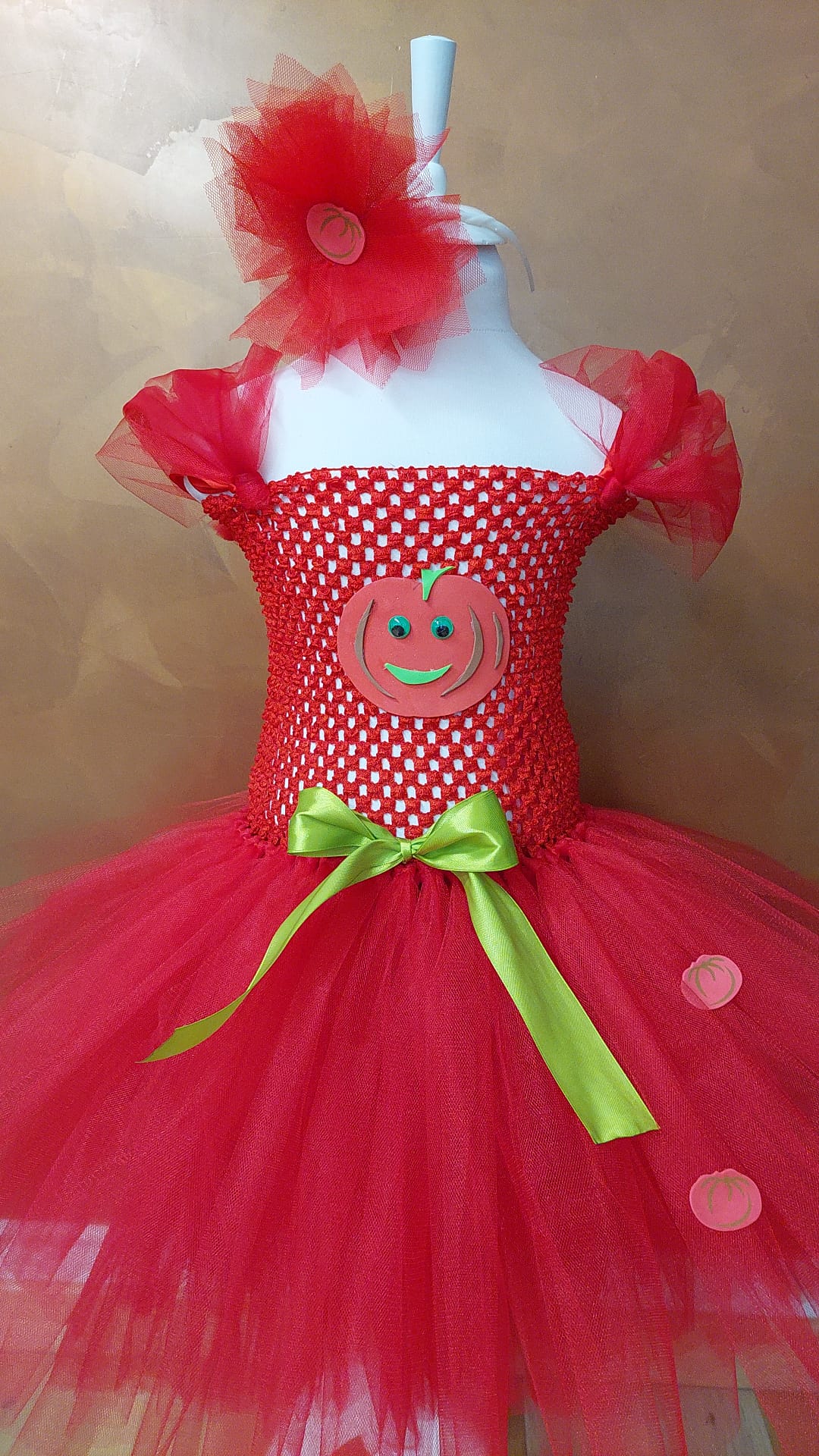 Rochița TUTU este realizată dintr-un corset de croșet elastic, pe care sunt aplicate manual 2 sau 3 randuri complete de tul sub forma de fașii care ofera volum mare rochiței, conferind imaginea unui personaj de poveste. Tulul este moale și plăcut la atingere.